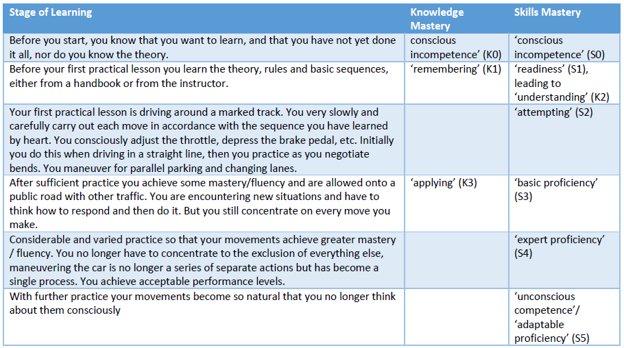 For example, think about applying the Trajectory to the various stages of learning to drive a car: